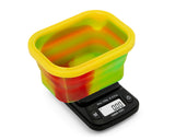 The ORIGINAL Silicone Bowl Scale includes a large collapsible silicone bowl and latching cover for incredible versatility. The silicone bowl contains and protects the scale when collapsed, keeping it safe from knocks and bumps. When fully expanded, the bowl provides a comfortably large volume for you to weigh your items in. Results are easy to read from the extra-large LCD with light green backlight. Built-in overload protection helps prevent damage to the scale. Other features include automatic Piece Counting, Power-saving Auto-Off after 3 minutes of inactivity, Tare/Zero feature for subtracting the weight of a container or expansion tray, and easy One-touch Calibration. Includes two AAA batteries.